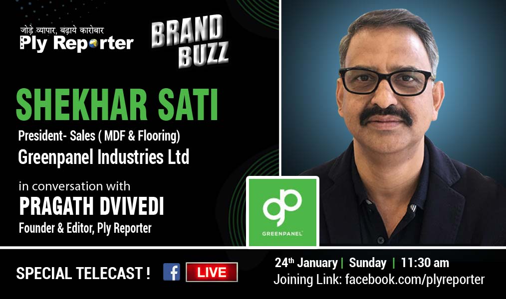 Register for Ply Reporter BRAND BUZZ - Mr. Shekhar Sati President - Sales (MDF & Flooring), Greenpanel in Conversation with Pragath Dvivedi, Founder, Ply Reporter
